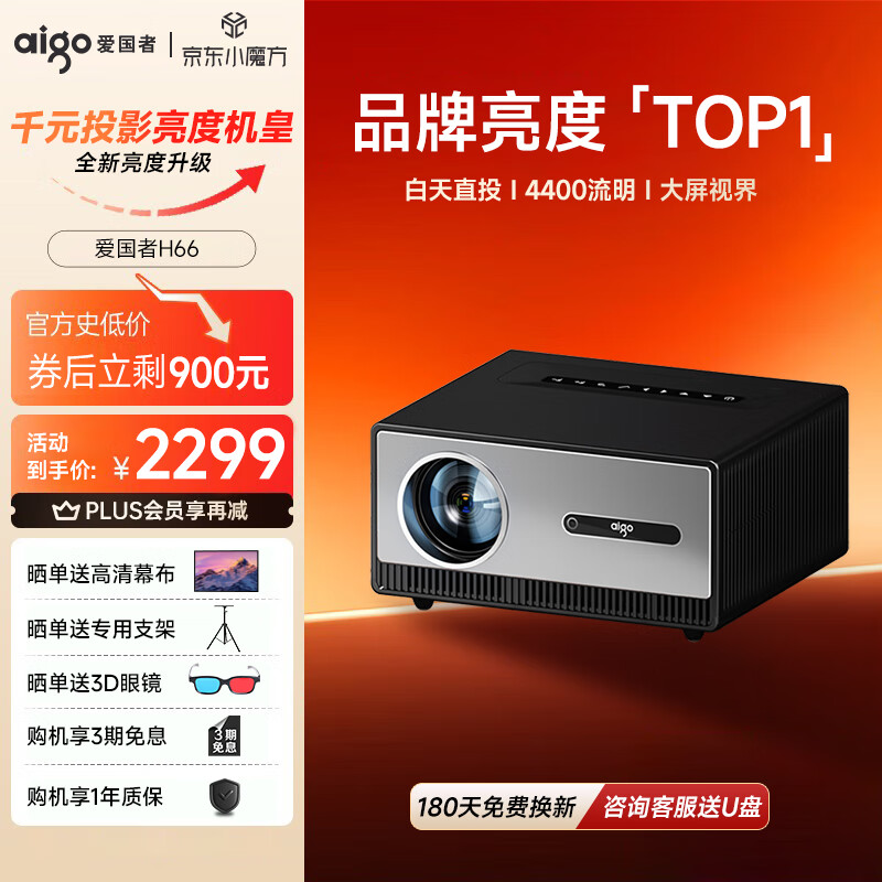 爱国者(aigo) H66 投影仪家用 投影机办公 超高清投影 智能家庭影院(全自动校正 自动对焦 封闭式光机)价格:3199.00元!