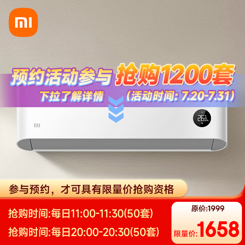 小米1.5匹 新一级能效 变频冷暖 智能自清洁 巨省电 壁挂式卧室空调挂机 KFR-35GW/N1A1价格:1658.00元!