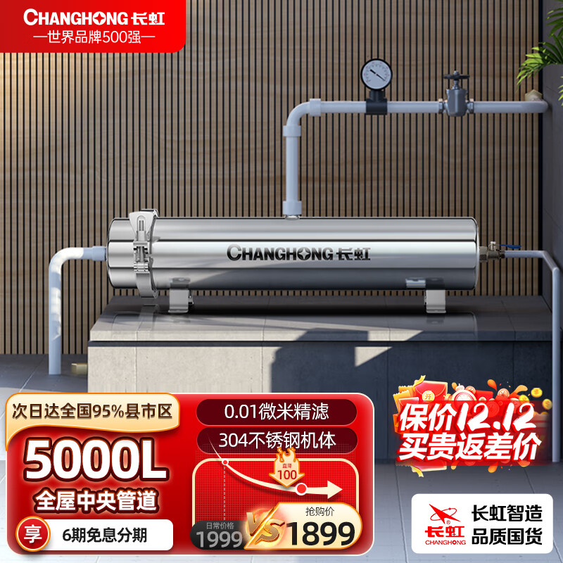 长虹(CHANGHONG)全屋中央管道净水器家用直饮超滤净水机前置农村井水别墅自来水过滤器大流量商 全屋中央管道【5000L大流量】价格:1999.00元!