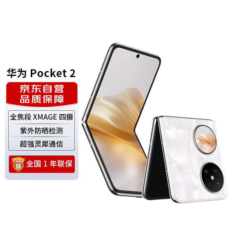华为(HUAWEI)Pocket 2 超平整超可靠 全焦段XMAGE四摄 12GB+1TB 洛可可白 华为折叠屏手机价格:7888.00元!