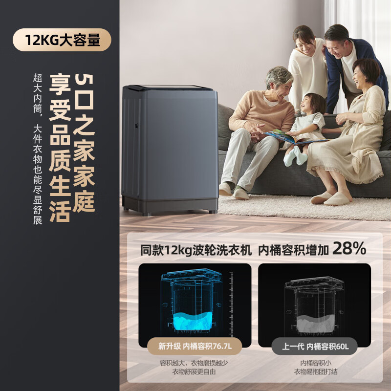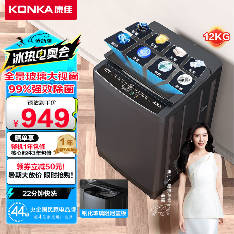 康佳(KONKA)12KG超大容量全自动波轮洗衣机家用除菌 一键智洗 全景玻璃大视窗 阻尼盖板 以旧换新 KB120-J668价格:998.00元!