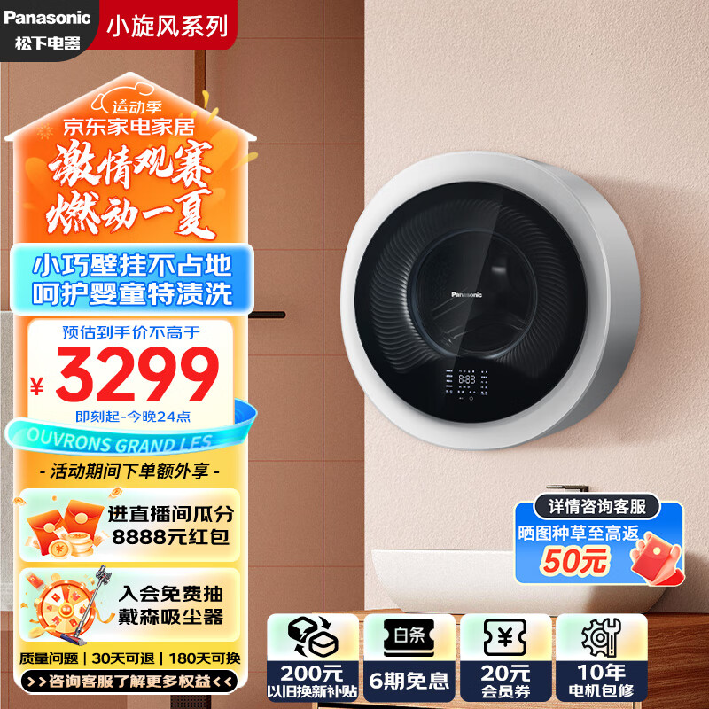 松下(Panasonic)滚筒洗衣机全自动【小旋风】壁挂洗衣机小型迷你儿童婴儿 内衣 母婴洗XQG30-A500W价格:3299.00元!