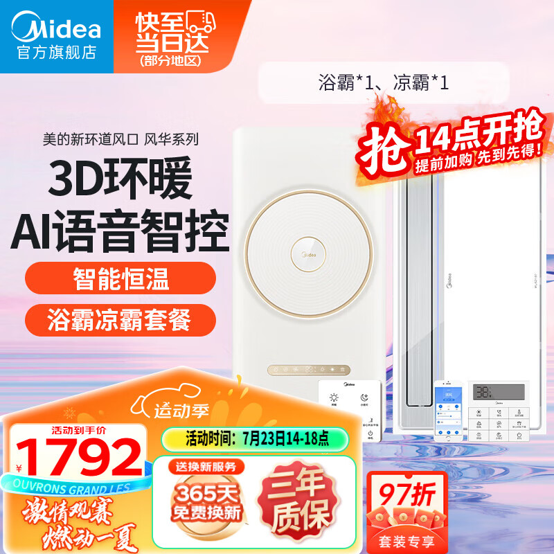 美的(Midea)风暖浴霸集成吊顶卫生间取暖器浴室环形智能双电机语音换气暖风机价格:1792.00元!