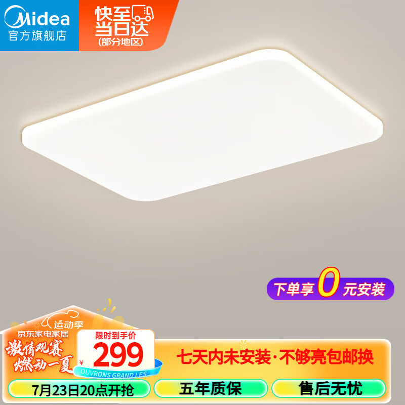 美的(Midea)客厅灯大灯led吸顶灯卧室灯简约现代餐厅灯饰灯具120瓦三色调光价格:339.00元!