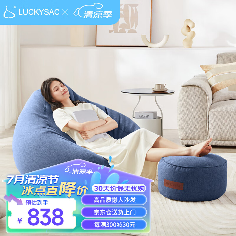 LUCKYSAC懒人沙发EPP豆袋 单人布艺客厅卧室阳台沙发椅 旗舰款一套皇家蓝价格:898.00元!