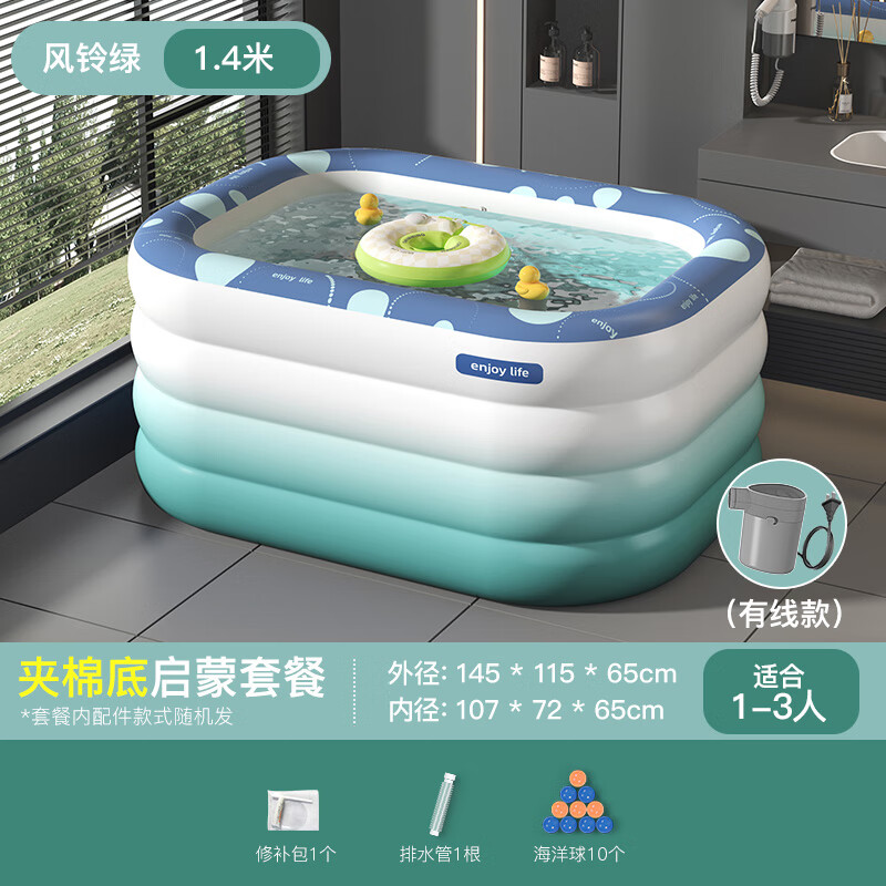 南极人1.4米夹棉充气婴儿游泳池 可折叠儿童洗澡沐浴桶室内外戏水池 绿价格:279.00元!