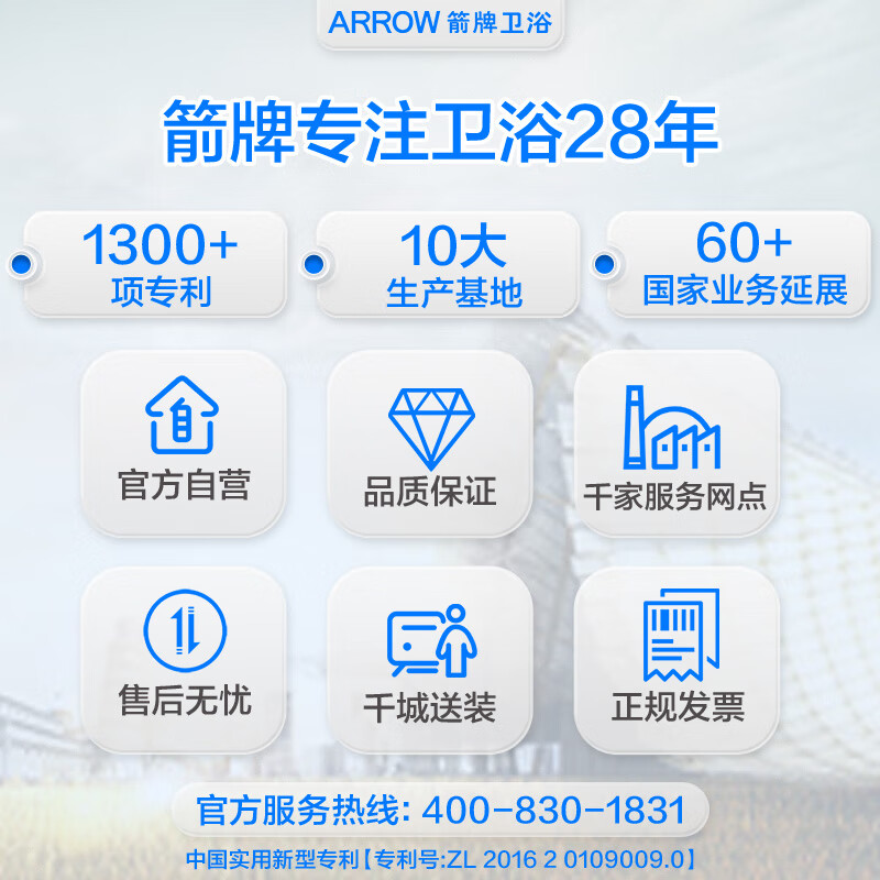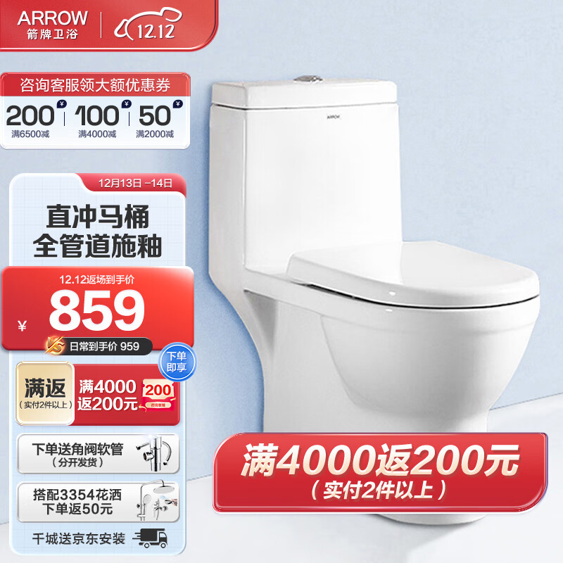 箭牌(ARROW)马桶家用直冲式坐便器大冲力座便坐厕 1级水效 全管施釉AEB12601M价格:1059.00元!