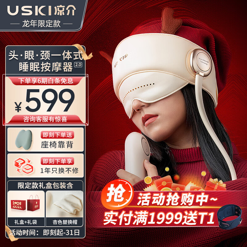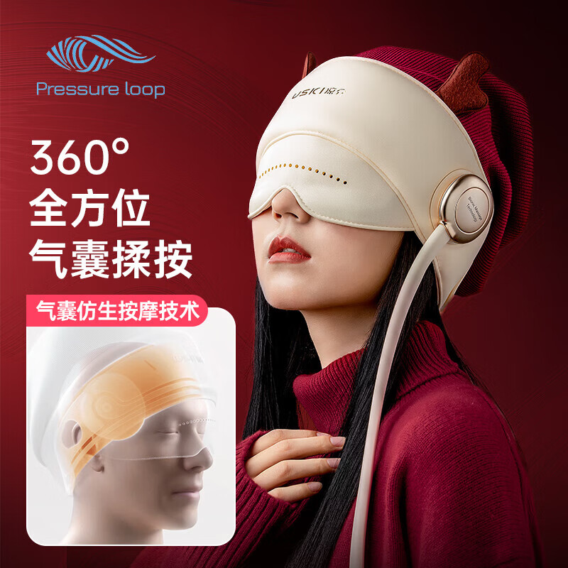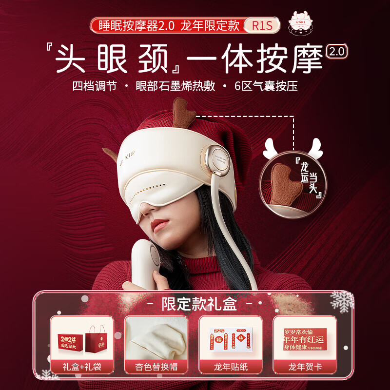 凉介(USKI)头部按摩器头眼颈一体式按摩仪按摩帽温感热敷气囊按摩送父母长辈 男女成人实用节日礼物 【睡眠按摩器2.0】R1S龙年礼盒款价格:699.00元!