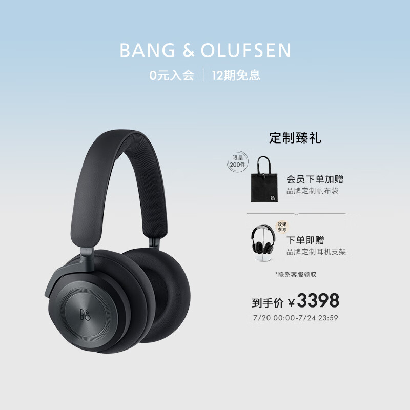 B&O Beoplay HX头戴式蓝牙无线耳机 bo自适应主动降噪音乐耳麦 Black Anthracite炭黑色 节日礼物价格:3398.00元!