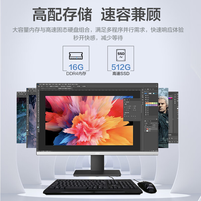 AOC 大师926 27英寸高清网课办公台式一体机电脑(酷睿i5 16G 512GSSD 双频WiFi 3年上门 )黑价格:2999.00元!
