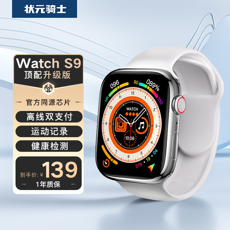 状元骑士华强北智能手表顶配运动WatchS9promax防水蓝牙通话电子手表男女通用nfc心率监测高清屏送礼物银色价格:219.00元!