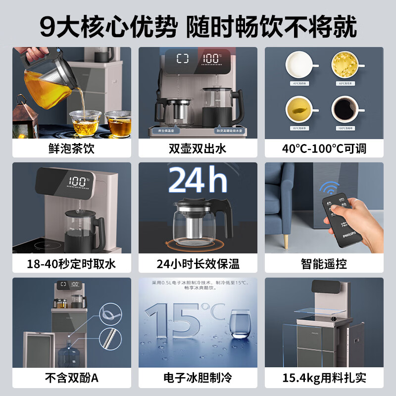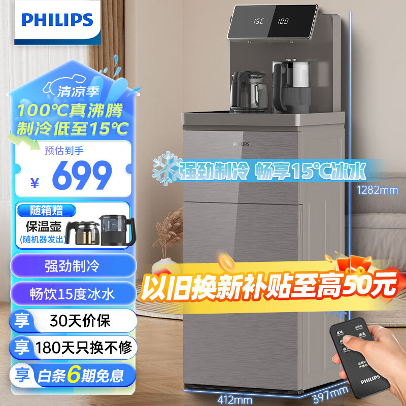 飞利浦(PHILIPS) 茶吧机家用冷热一体饮水机 茶吧柜全自动智能下置办公室遥控自动上水多段温控保温多功能ADD4867价格:699.00元!