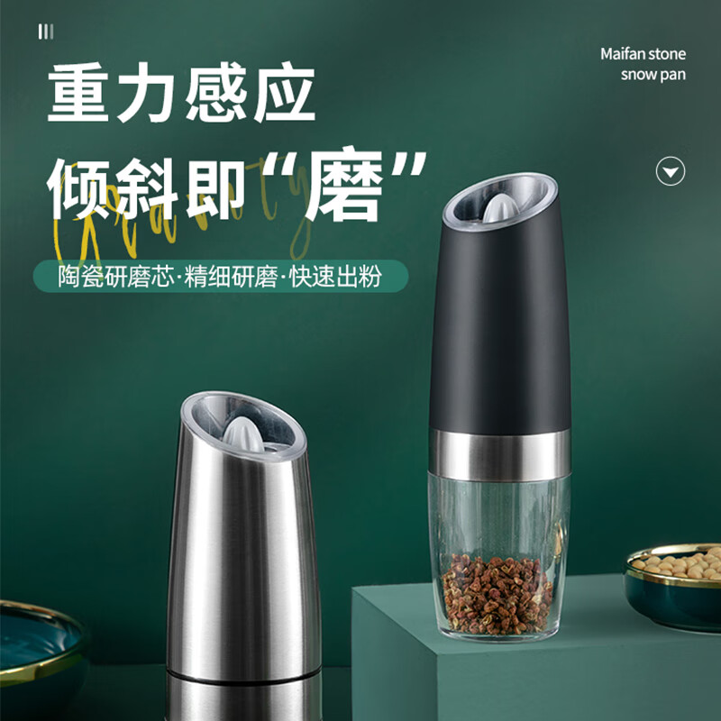 品喻(PINYU)电动胡椒研磨器 家用黑胡椒粒花椒海盐粉重力感应不锈钢自动研磨瓶器罐价格:49.00元!