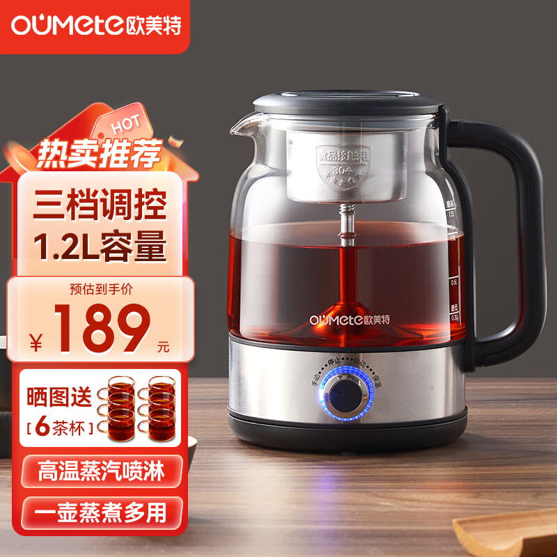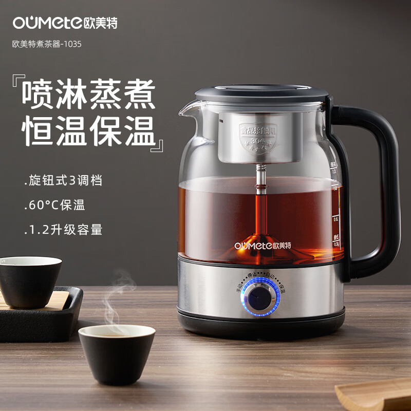 欧美特(OUMETE)煮茶壶煮茶器 第六代喷淋式蒸汽茶壶养生壶玻璃保 恒温温煮茶烧水壶 OMT-PC1035价格:189.00元!