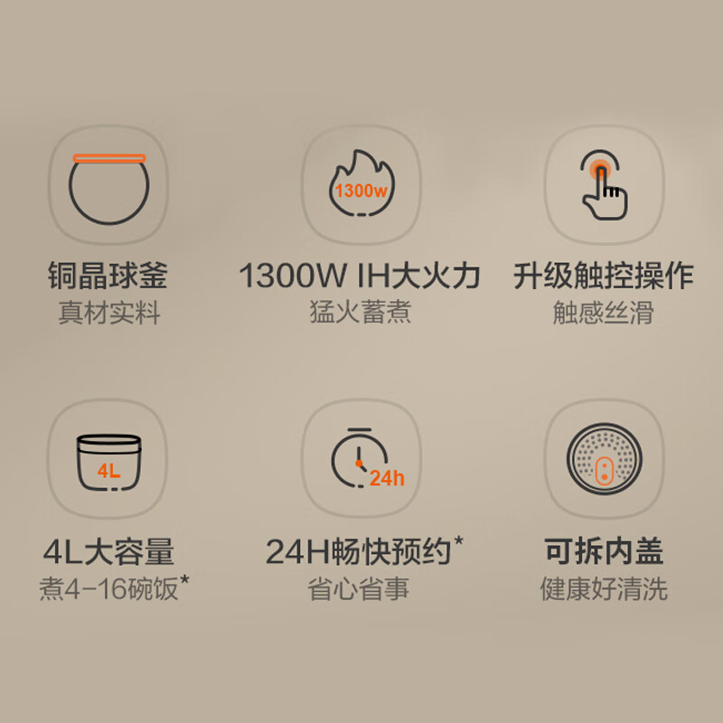 苏泊尔(SUPOR)ZMD安心系列 1300W大火力 IH加热 智能预约可拆 4L铜晶球釜彩屏电饭煲SF40HC1028价格:599.00元!