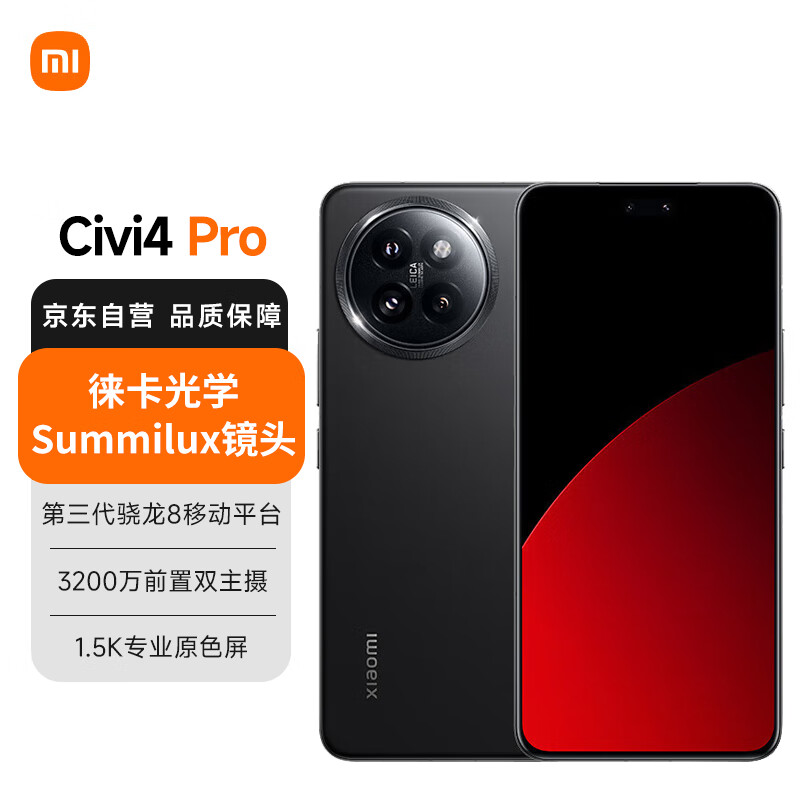 小米(MI)Xiaomi Civi 4 Pro 12GB+256GB 星空黑 5000万徕卡Summilux镜头 第三代骁龙8s 全等深微曲屏5g手机价格:2799.00元!