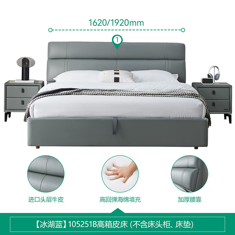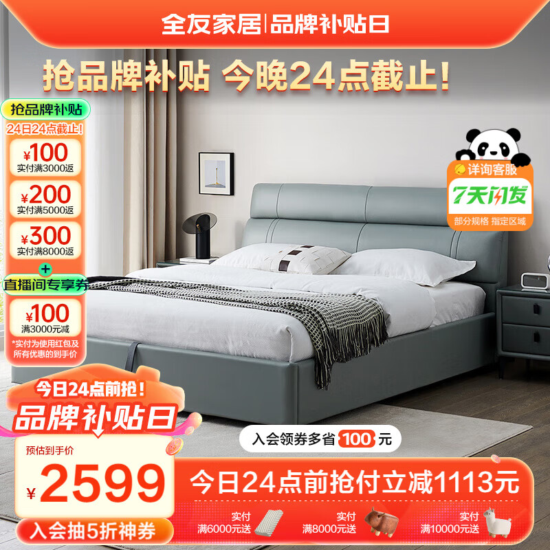 全友家居 真皮艺床头层牛皮现代简约主卧室双人大床高箱储物床105251价格:3712.86元!