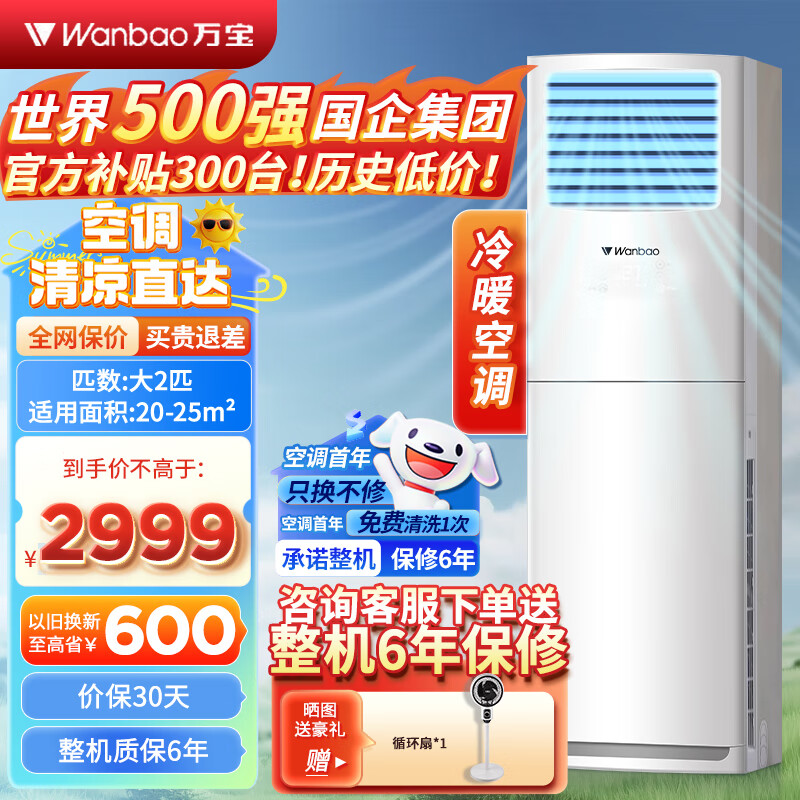 万宝(Wanbao)定频冷暖空调柜机 客厅卧室急速冷暖立柜式2匹空调大风量 KFR-52LW/WB2-N5 含基础安装价格:2999.00元!