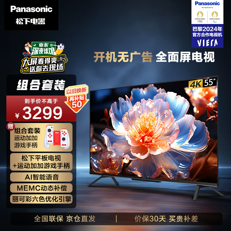 松下(Panasonic)电视LX580 55英寸 游戏手柄套装 屏MEMC 开机无广告智能电视机 TH-55LX580C价格:3399.00元!