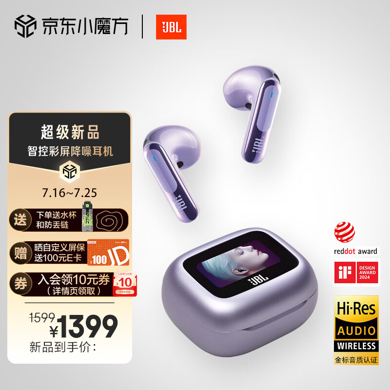 JBL LIVE FLEX 3晶彩荚 真无线蓝牙耳机智能触屏自适应降噪音乐运动耳麦苹果华为小米通用木槿紫价格:1399.00元!