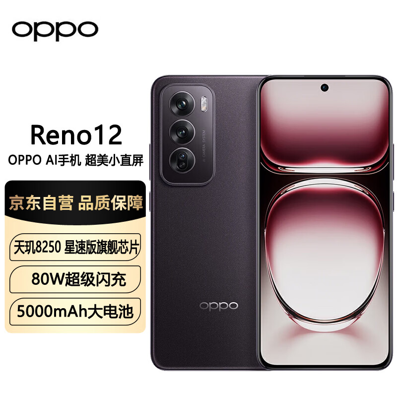 OPPO Reno12 超美小直屏 安卓Live图 天玑8250旗舰芯 12GB+256GB 乌木黑 长续航智能拍照 AI影像5G手机价格:2699.00元!