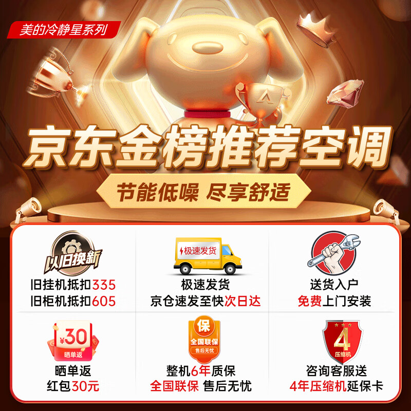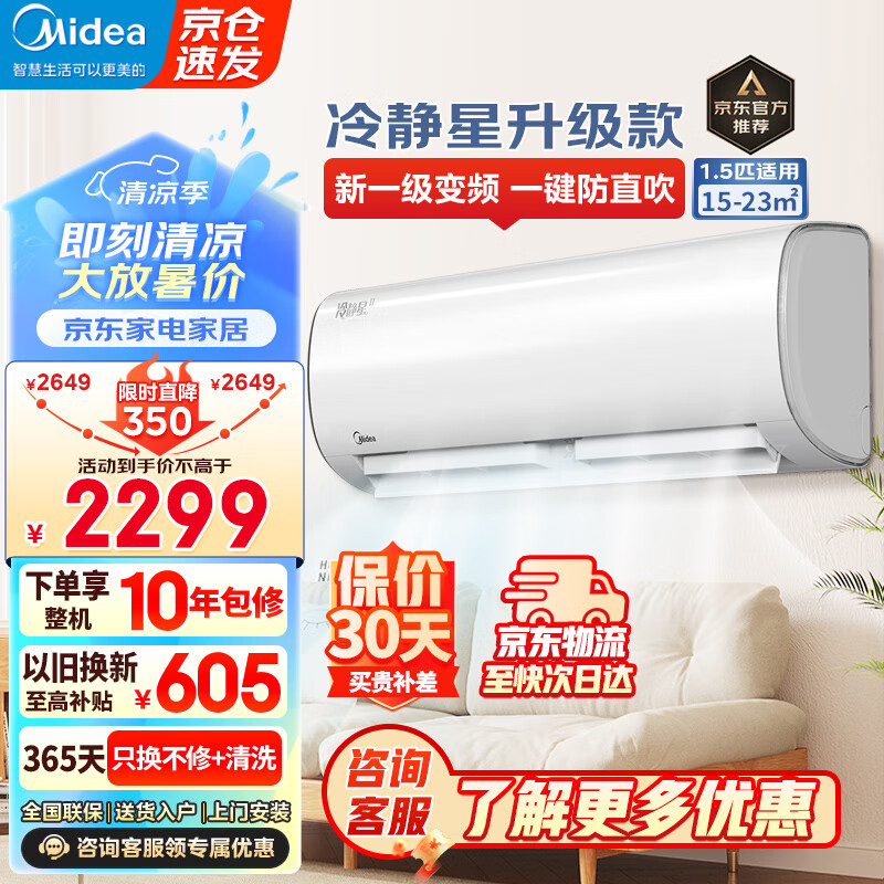 美的(Midea)空调1.5匹 冷静星升级款 新一级能效全直流变频 壁挂式空调挂机智能家电KFR-35GW/BDN8Y-PH200(1)A价格:2299.00元!