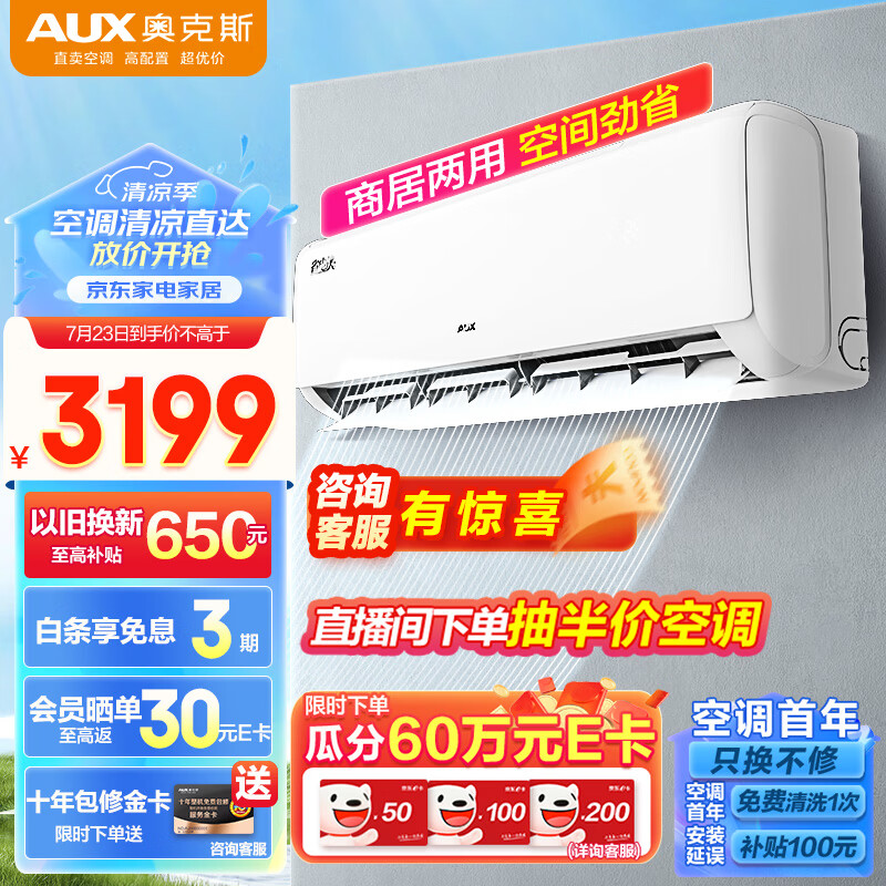 奥克斯(AUX)2匹省电侠空调挂机 新1级能效 空间劲省 快速冷暖 独立除湿KFR-46GW/BpR3AQK1(B1)澎湃大风量价格:3199.00元!