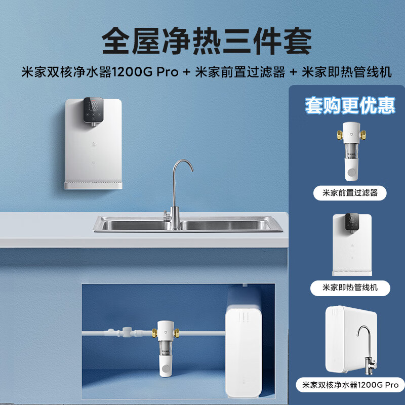 米家【净水+管线机+前置】净水器1200G Pro双核+管线机+前置过滤器 小米净水器套装C价格:4047.00元!