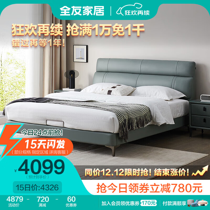 全友家居 进口头层皮皮床简约1.8米双人床护腰软床卧室家具105251B价格:4879.00元!