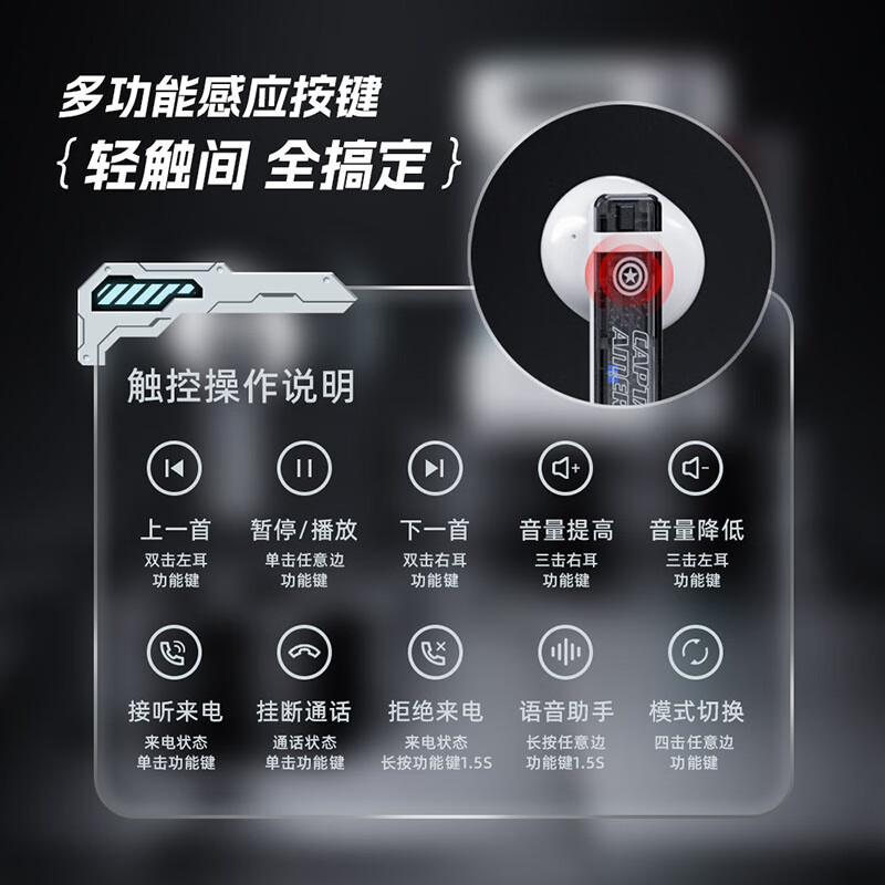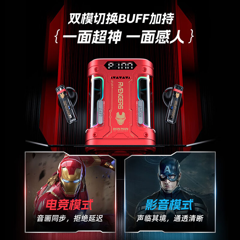 迪士尼漫威无线游戏蓝牙耳机半入耳式男生学生生日礼物低延机甲音效迟适用于华为苹果红魔IQOO MV10黑色价格:164.20元!