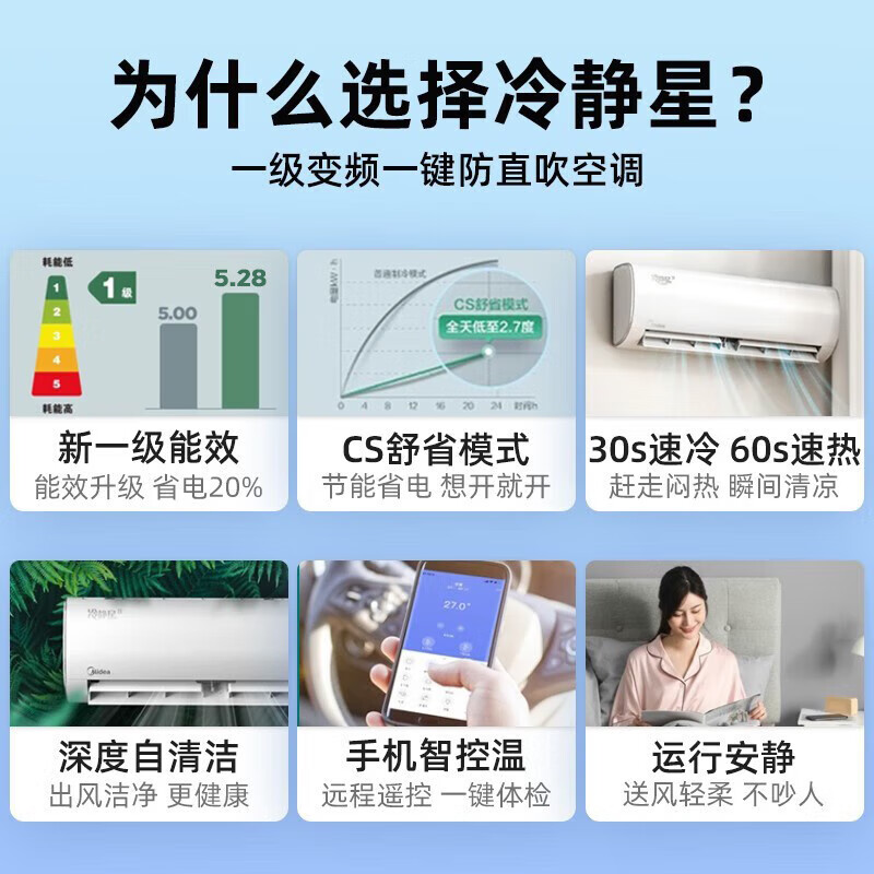 美的(Midea)空调挂机 冷静星二代 变频家用冷暖卧室壁挂式空调 PH200 大1匹 [新一级能效]价格:2099.00元!