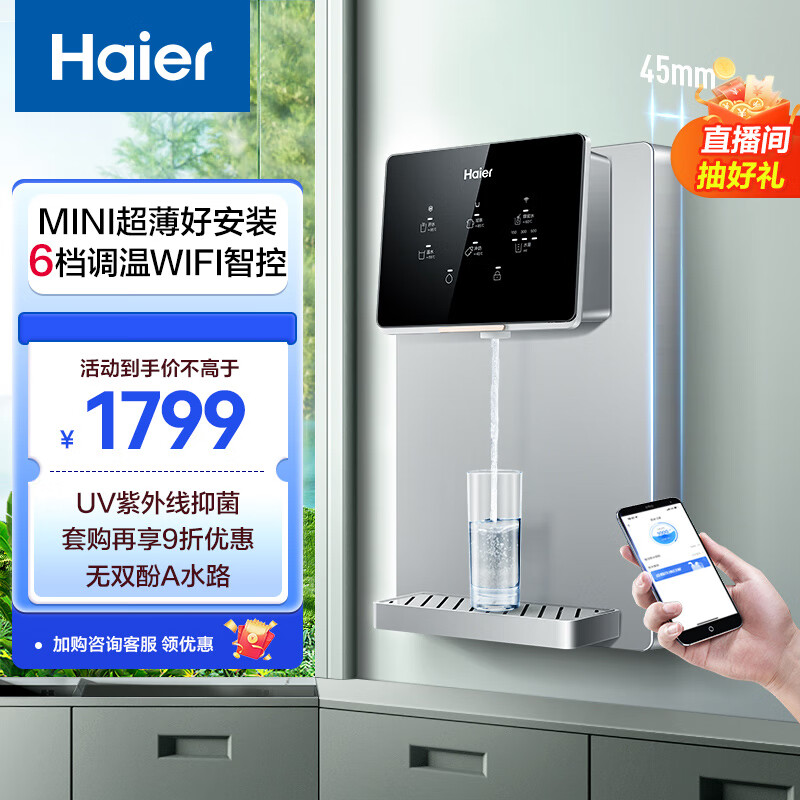 海尔(Haier)管线机 壁挂式饮水机 家用超薄无胆即热式直饮机厚膜速热 6档水温调节净水器伴侣HGR2291-JU1价格:1799.00元!