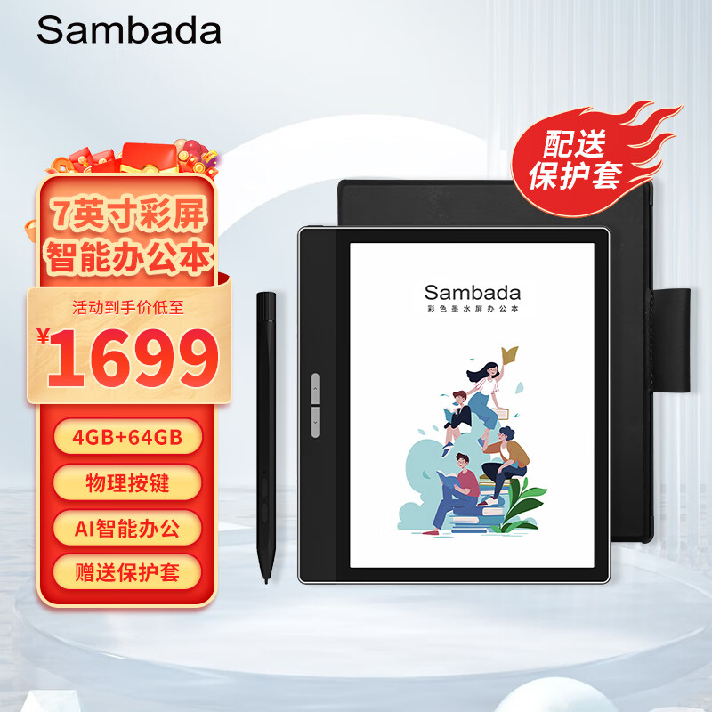 SAMBADA电纸书7英寸彩色墨水屏电子书阅读器 高刷智能办公本 电子笔记本手写 会议记录语音转文字价格:1799.00元!