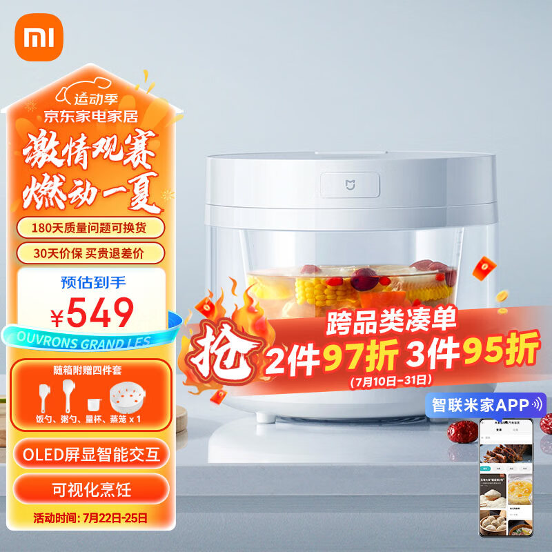 米家小米电饭煲家用3-4个人/5-8人 多功能电饭锅煮饭锅煮粥锅 无涂层玻璃内胆 蒸煮可视 大容量4升价格:549.00元!