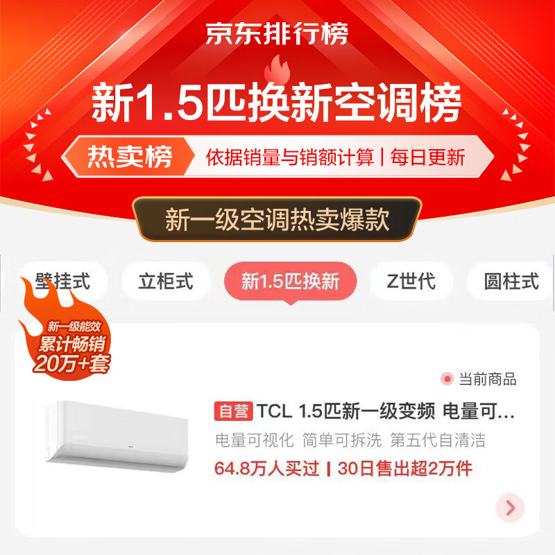 TCL 1.5匹 新一级能效 变频冷暖 易拆洗 净怡风 壁挂式 空调挂机KFRd-35GW/D-STA11Bp(B1)省电节能价格:2399.00元!