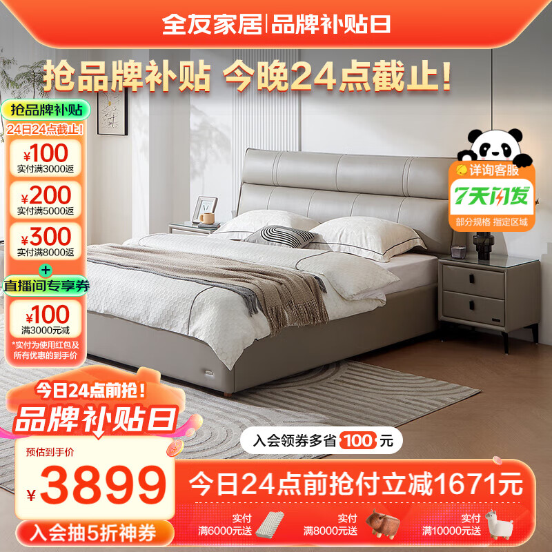 全友家居 卧室现代简约床真皮床家具高箱储物双人大床1.8米x2米116033价格:5570.00元!