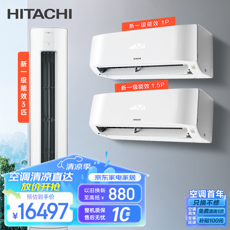 日立(HITACHI)白熊君套装空调 新一级 超高性价比 两挂一柜 RAK/C-HH09PHAPC+RAK/C-HH12PHAPC+RAF/C-GH30PHAPC价格:16497.00元!