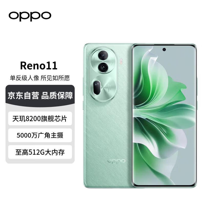 OPPO手机 Reno11 5000万单反级人像三摄 天玑8200 旗舰芯 长续航 12GB+512GB 萤石青价格:2799.00元!