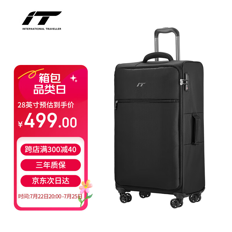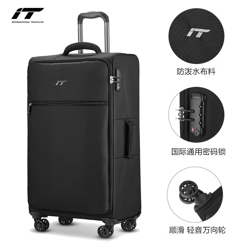 INTERNATIonAL TRAVELLER英国IT拉杆箱托运旅行箱万向轮超轻行李箱28英寸软布箱1191黑色价格:599.00元!