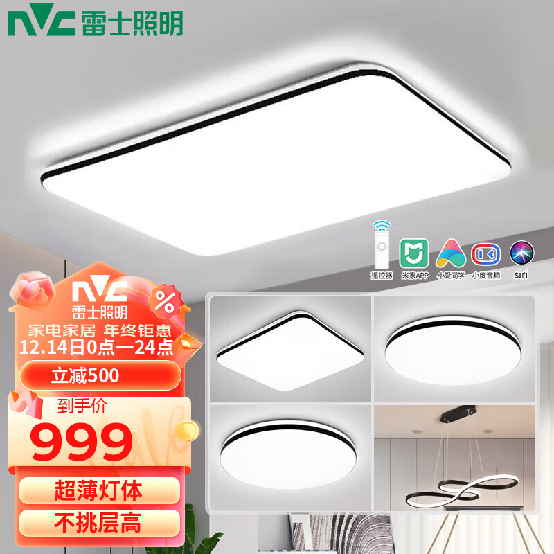 雷士照明(NVC)吸顶灯客厅大灯卧室餐厅灯具全屋套餐三室两厅B主灯智控价格:1299.00元!