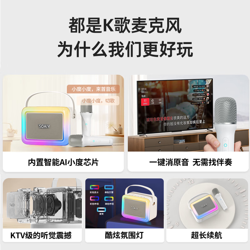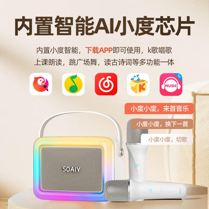 索爱(soaiy)话筒音响一体自带声卡k歌麦克风家庭ktv音响套装无线蓝牙音箱唱歌神器一体式儿童 SK10AI版双麦白价格:259.00元!