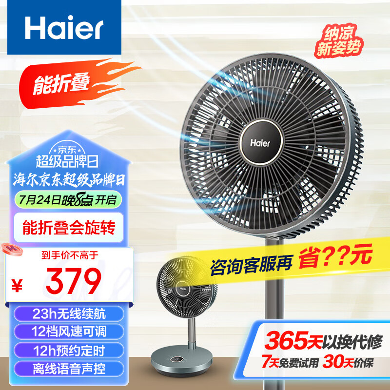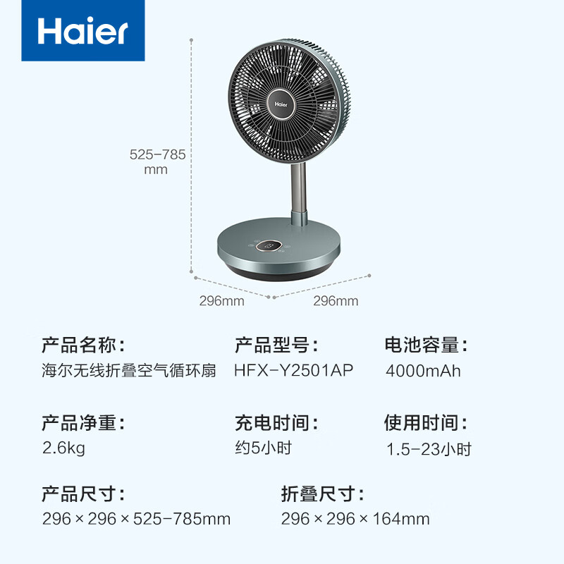 海尔(Haier)空气循环扇无线折叠电风扇电子触控语音定时直流轻音节能台式桌面两用循环扇HFX-Y2501AP价格:419.00元!