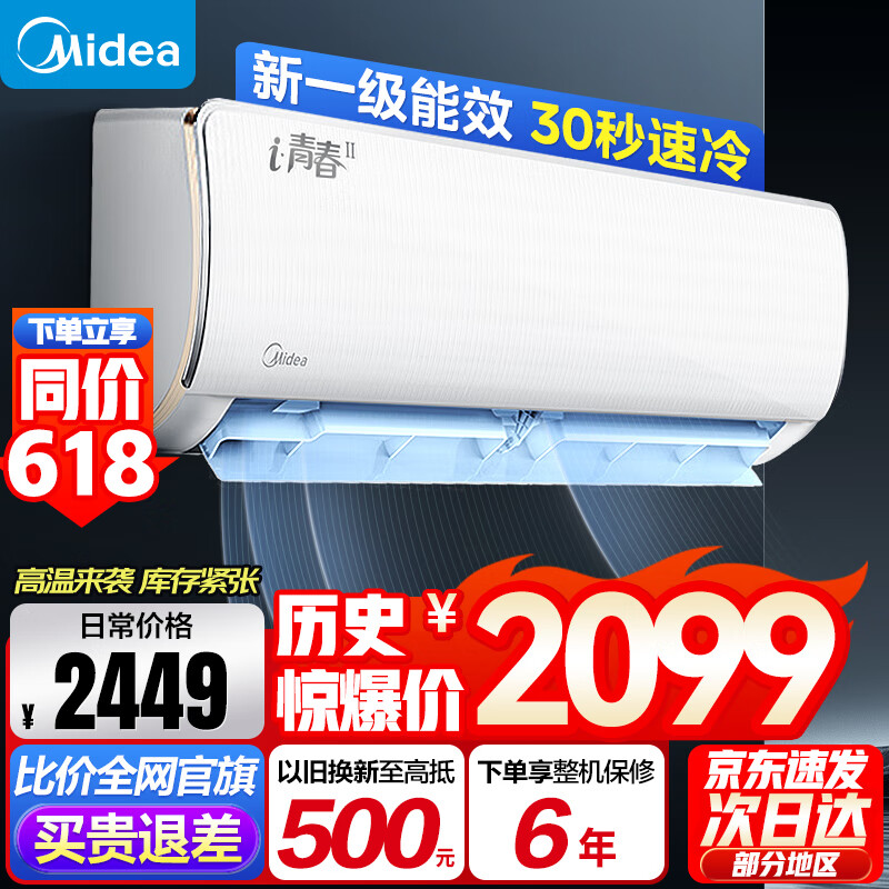 美的(Midea)大1匹 新一级能效空调 变频冷暖卧室家用壁挂空调挂机 智能家电 防直吹自清洁 以旧换新 i青春价格:2099.00元!