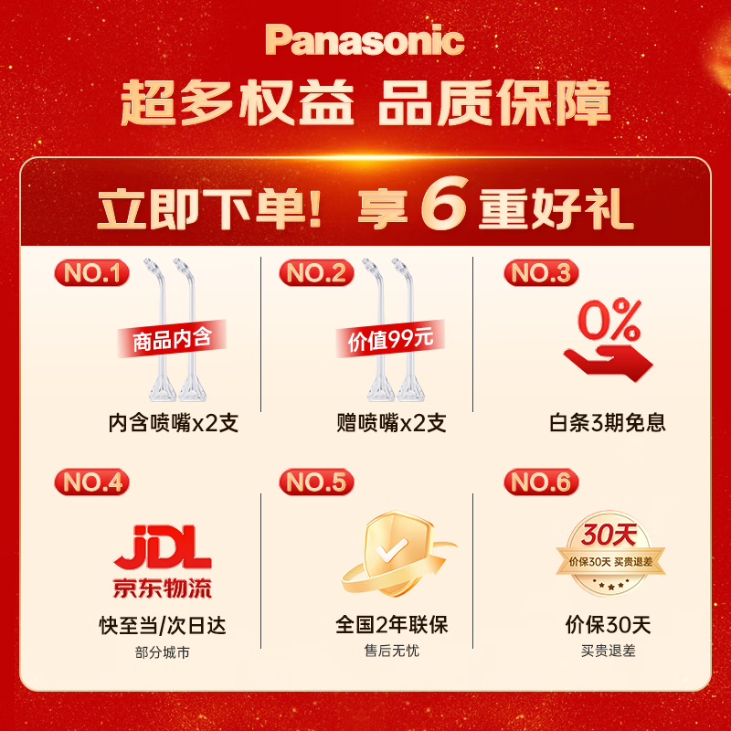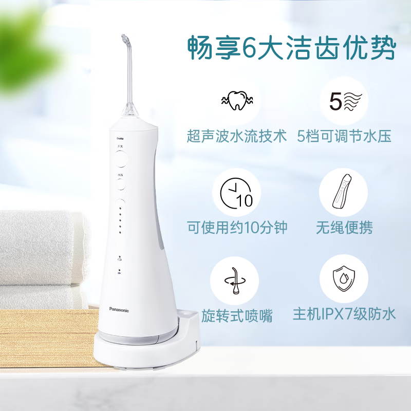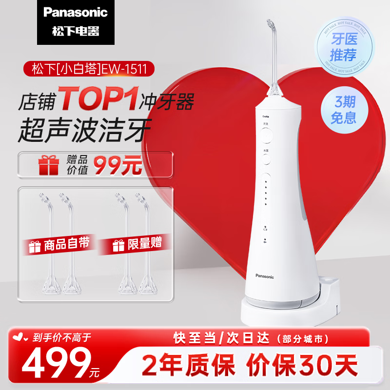 松下(Panasonic)冲牙器便携式电动洗牙器水牙线超声波洁牙器家用牙医推荐预防牙结石正畸七夕情人礼物送女友1511白价格:499.00元!