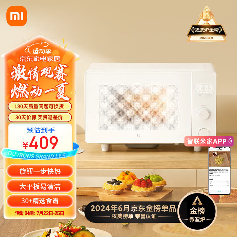 米家小米微波炉家用小型多功能 小尺寸平板式易清洁 大火力均匀加热 机械式旋钮易操作 台式大容量20升价格:409.00元!