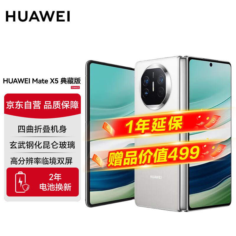 华为(HUAWEI)Mate X5 典藏版 折叠屏手机 16GB+1TB 羽砂白价格:16899.00元!
