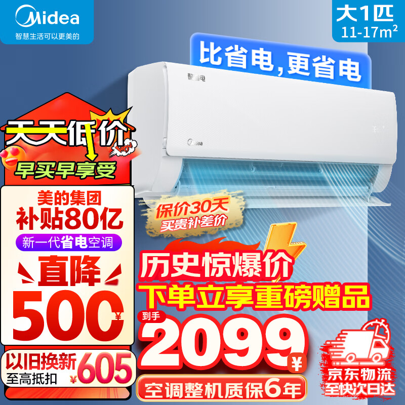 美的(Midea)酷省电空调挂机大1匹级一能效升级大风口全直流变频冷暖空调节能省电 KFR-26GW/N8KS1-1价格:2099.00元!