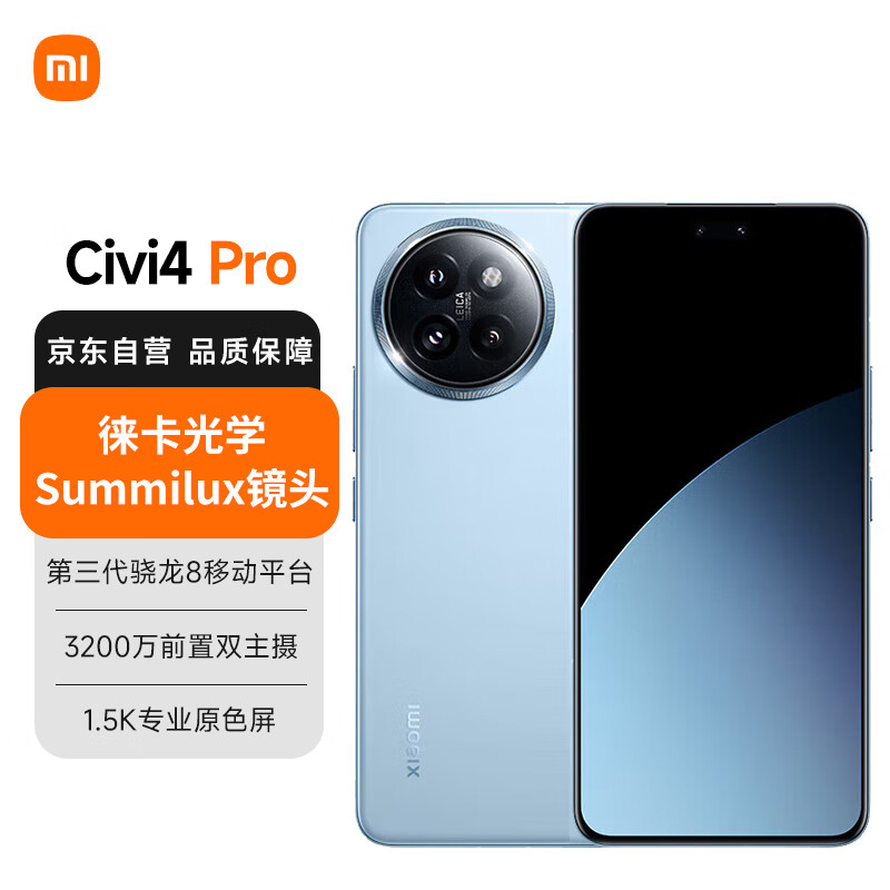 小米(MI)Xiaomi Civi 4 Pro 12GB+512GB 微风蓝 5000万徕卡Summilux镜头 第三代骁龙8s 全等深微曲屏5g手机价格:2999.00元!