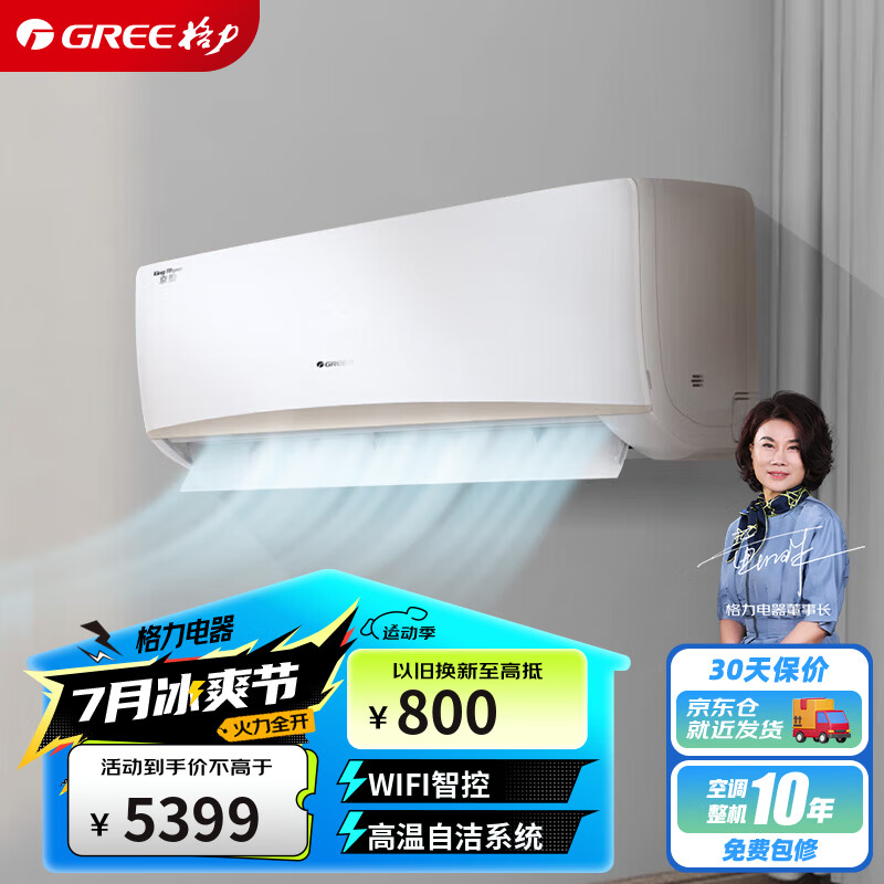 格力(GREE)2匹 京韵 三级能效 变频冷暖 净菌自洁 WIFI智控 壁挂式空调挂机 KFR-50GW/NhIe3BAj价格:5399.00元!