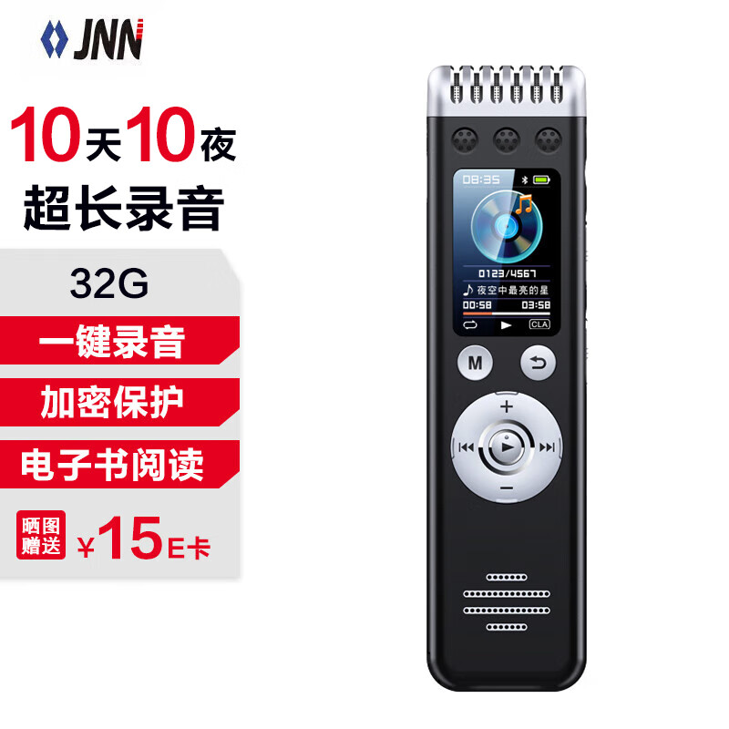 JNN录音笔Q88 32G 超长录音 高清降噪 可看视频图片电子书阅读 学习培训商务会议 MP3播放器 黑色价格:159.60元!
